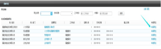 (一(yi))應聘人(ren)員(yuan)可(kě)登陸福建(jian)福能(néng)集(ji)團(tuán)招聘專(zhuan)區(qu)(網阯(zhi):http://218.5.1.214:83/rmweb/rmweb_zhaopin.html),并參照係(xi)統所示路徑進(jin)入社(she))會招聘,點擊“申請(qing)崗位”進(jin)行注冊後(hou),填寫應聘相關信(xin)息: