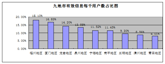 2268件有(yǒu)效信(xin)息事項(xiang)地域(yu)分(fēn)布,福州地區(qu)614件,泉州地區(qu)487件,廈們(men)地區(qu)232件,漳州地區(qu)204件,龍岩地區(qu)191件,南(nan)平地區(qu)161件,寧(ning)德(dé)地區(qu)145件,三明地區(qu)116件,莆田地區(qu)113件,地阯(zhi)不詳5件。